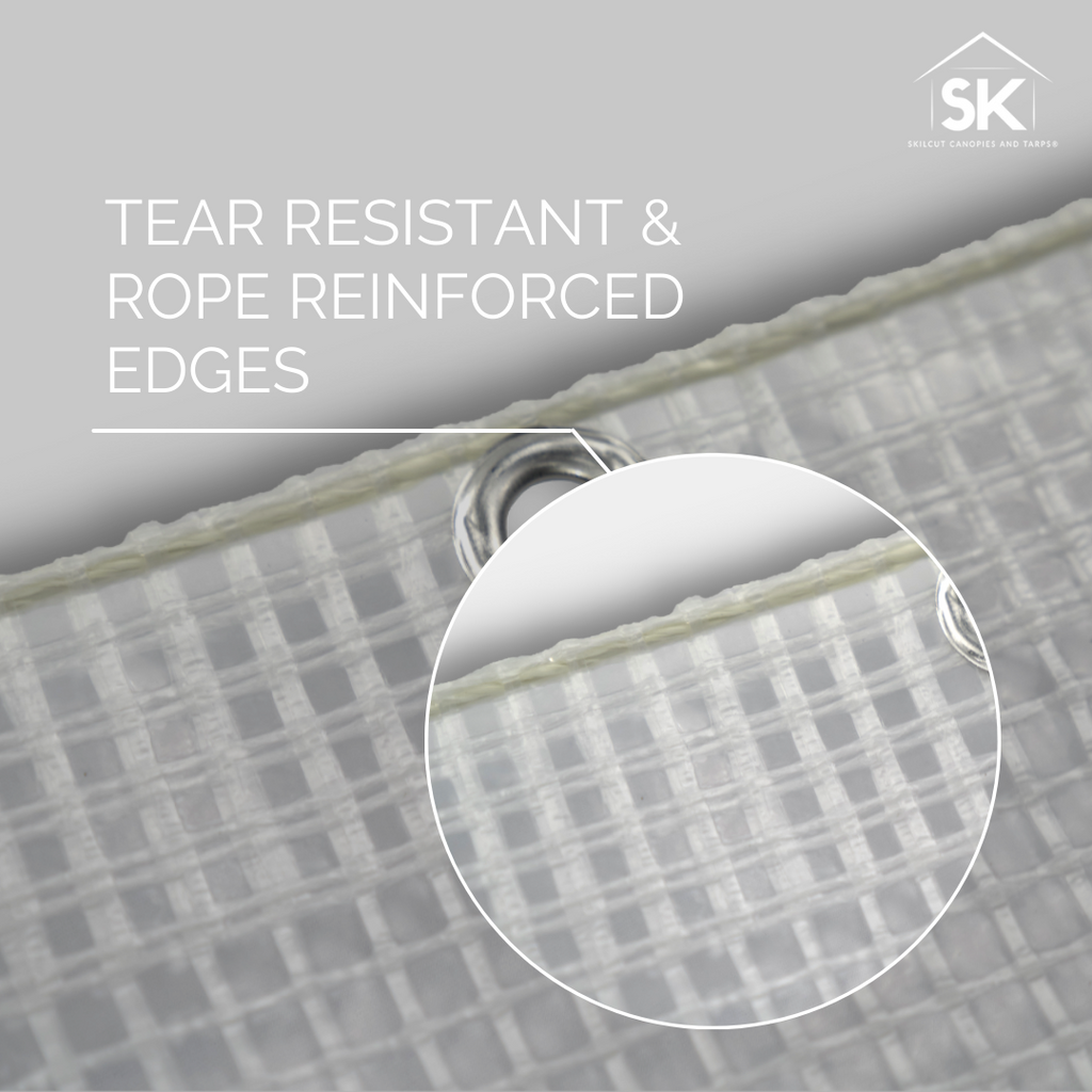 Our Skilcut¨ 16 Mil Clear Poly Tarps are perfect for situations where you want light to penetrate through the tarp with UV protection and still see what's under it. Our tarps are rugged and very durable. The 16 Mil thickness makes these reliable and strong.